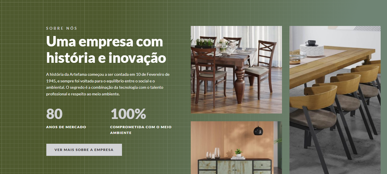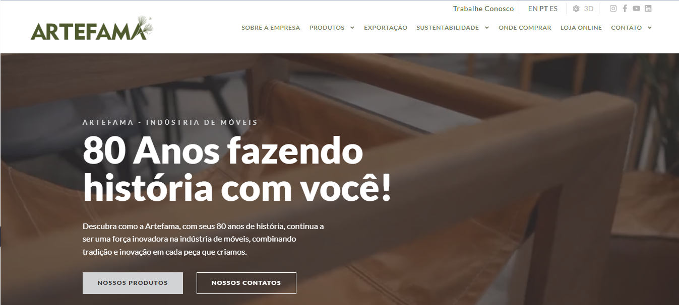 Usando como exemplo o site da Artefama, fica claro como uma presença digital bem estruturada transmite confiança, organiza informações e fortalece a imagem da empresa logo no primeiro acesso. Veja em detalhes: